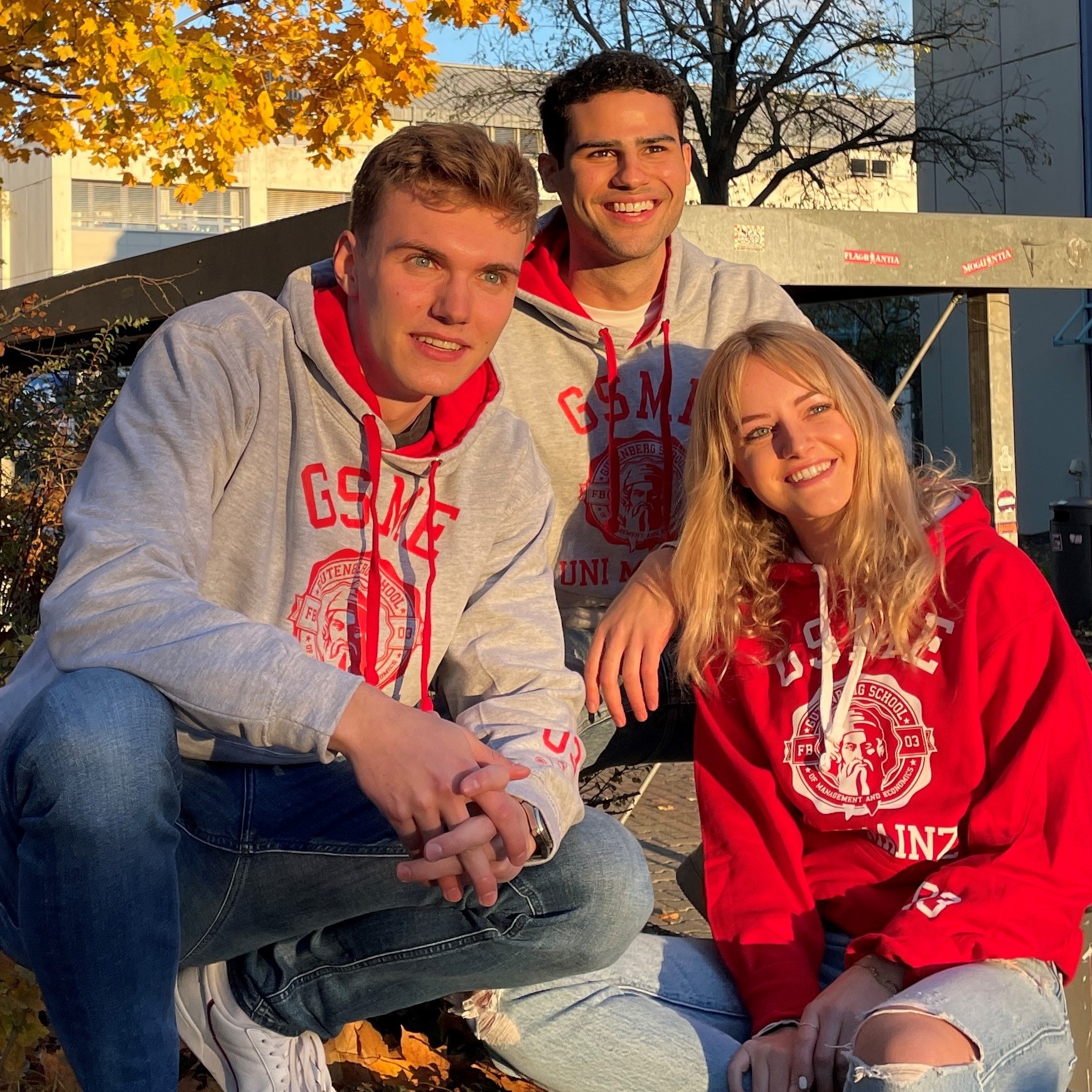 Der Winter steht vor der Tür und unsere GSME-Hoodies sind der perfekte Buddy für die kalte Jahreszeit. Egal ob im Mainzer rot für 05er-Spiele oder in lässigem grau für den Weihnachtsmarkt, jeden Montag bis Freitag zu unseren Sprechstunden könnt ihr bei uns im Fachschaftsraum (ReWi) einen für lockere 25 € erwerben.